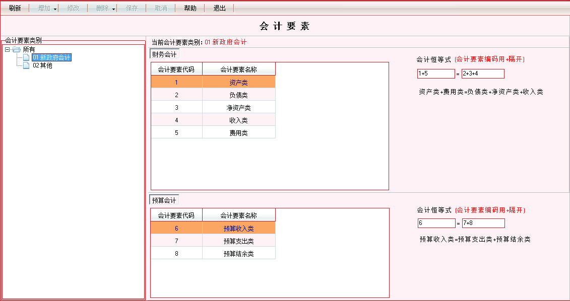 預(yù)置政府會(huì)計(jì)科目體系,引入“5+3”會(huì)計(jì)要素。同一會(huì)計(jì)核算系統(tǒng)中實(shí)現(xiàn)“雙功能”、“雙基礎(chǔ)”,即實(shí)現(xiàn)財(cái)務(wù)會(huì)計(jì)和預(yù)算會(huì)計(jì)雙重功能,財(cái)務(wù)會(huì)計(jì)采用權(quán)責(zé)發(fā)生制,預(yù)算會(huì)計(jì)采用收付實(shí)現(xiàn)制雙 基礎(chǔ)功能。