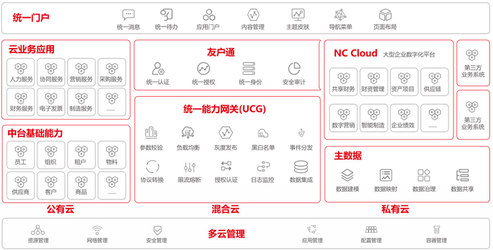 用友 NC Cloud 全面應(yīng)用新混合云技術(shù)架構(gòu),公有云、私有云、專屬云、混合云,隨需而定。DevOps、容器云、微服務(wù)、Open API......,在多云多態(tài)多端間實(shí)現(xiàn)按需部署,適配企業(yè)的智能共享,更靈活,更敏捷,更高效,更智能。